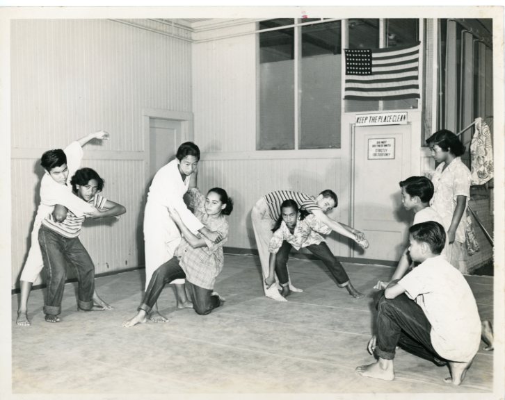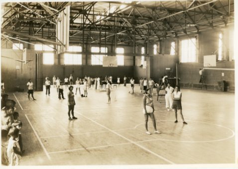 A group of boys playing at Palama Settlement gym, 1920-1930. -