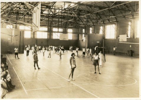 First photo of a game of volleyball at Palama Settlement gymnasium, 1970. -