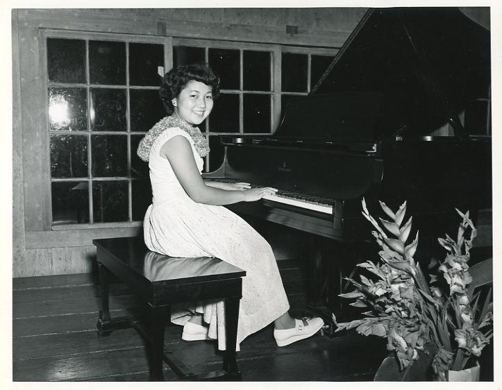 Musical teacher and students practice vocals. Seating left to right - Loretta dao, Florence Youeyama, Judy Tawauaha, Mareia Hayashi, Myra Ho, Shirley Chang, Jane Chang, Loretta Au, Elaine Mon