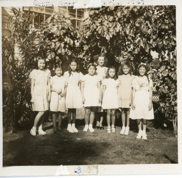 Part of the spring recital group poses, 1947. Left to Right