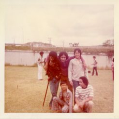 Teenage boys posing for a photo at Palama Settlement field, April 1973. -