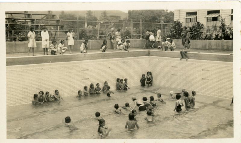 Low tide at Palama Settlement pool, circa 1930.
