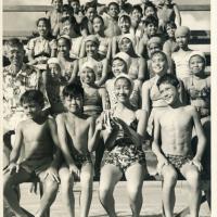 Likelike school swimmers posing with their instructor, 1950.