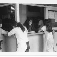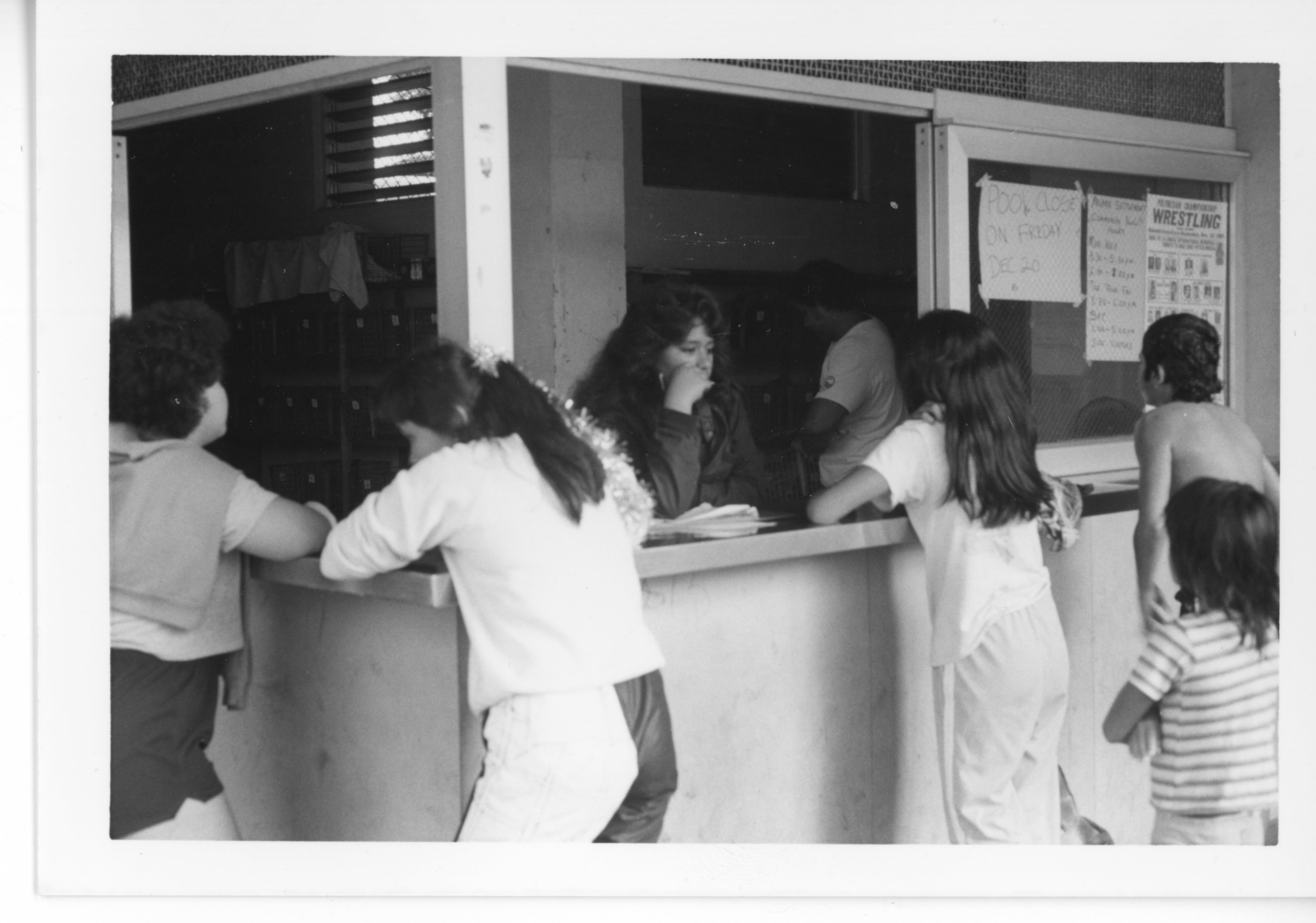 - Youth signing up for pool office, 1985. Neg. 13-8