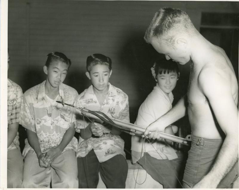 - Group of youths looking at a harpoon, 1960.