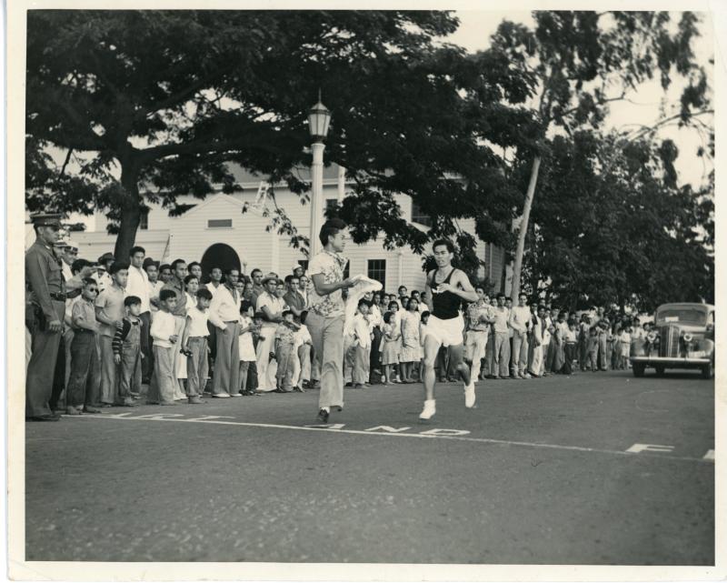 - Track Athlete (Norman Tamanaha) Running to Finish Line, 1938.