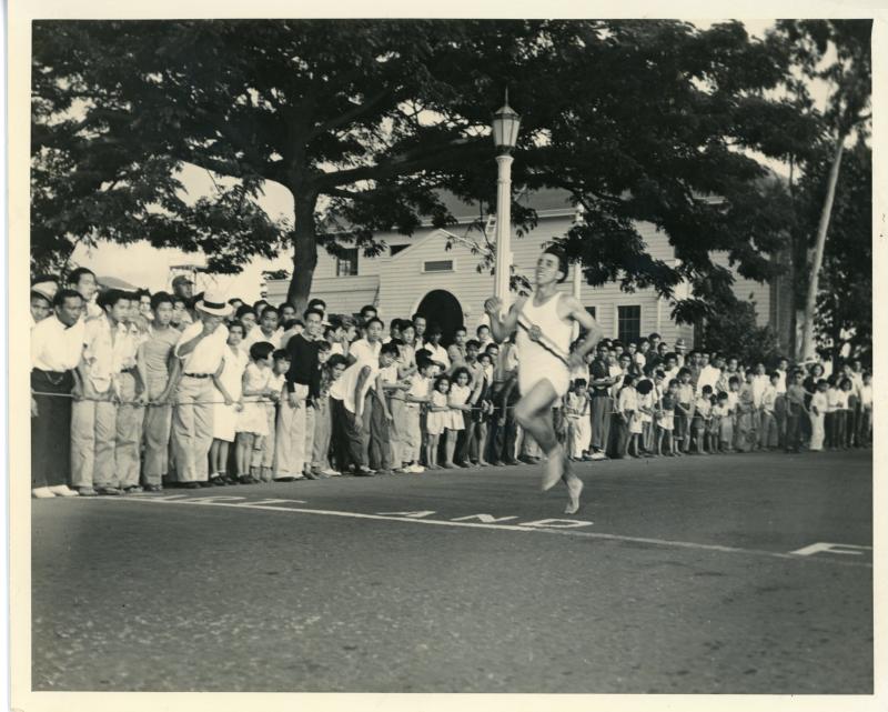 - Track Athlete (Walter Goveia for Waipahu) Running to Finish Line, 1938.