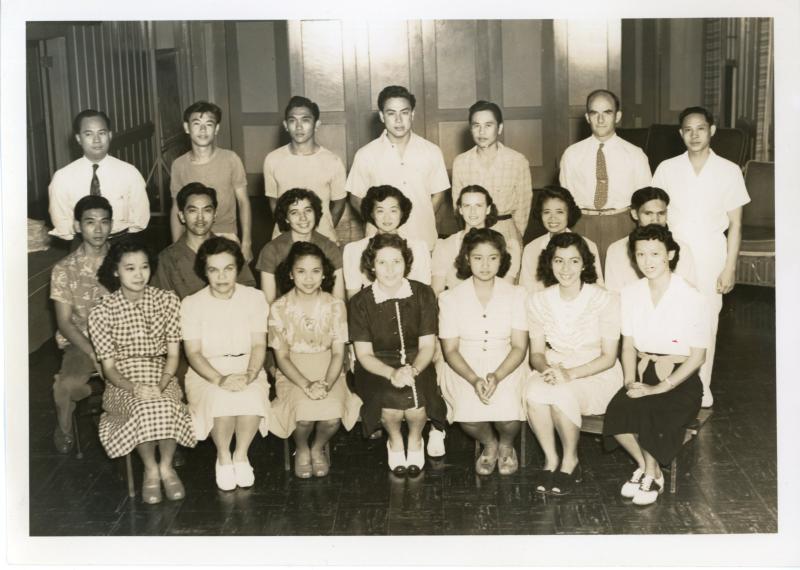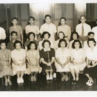 - Music school class at Palama Settlement led by neighborhood program director Paul B. Anderson, circa 1946-1949.