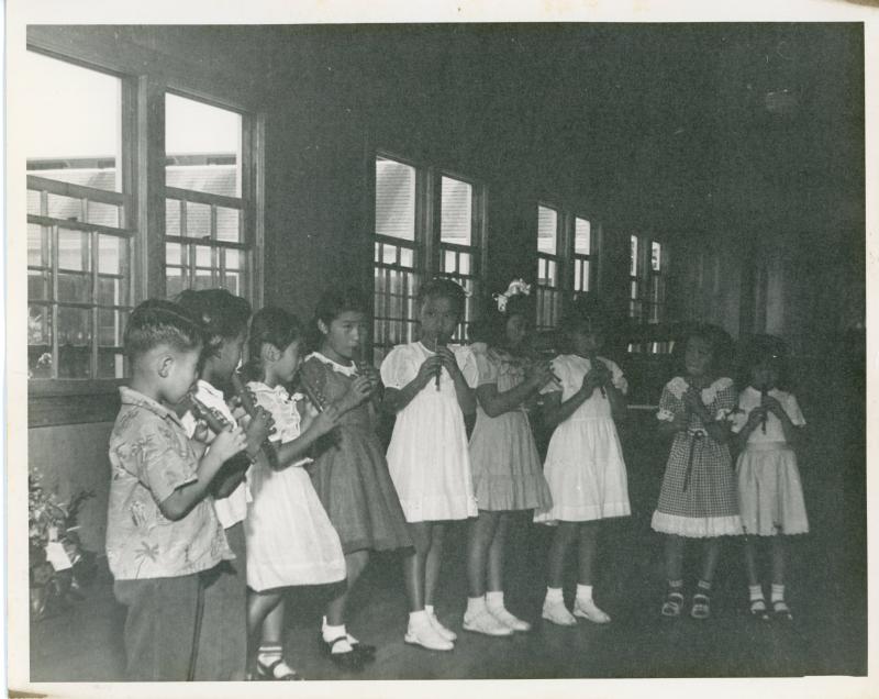 - Students perform the recorder at the Music School Recital and Awards, June 6, 1948.