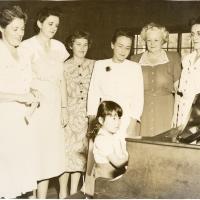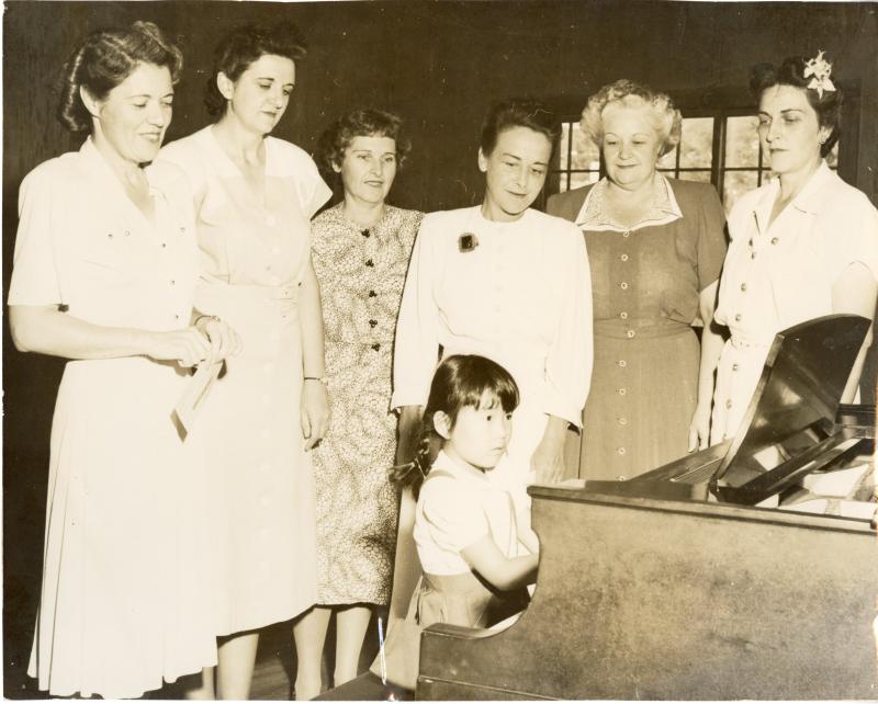 A girl performs for a Committee from Kappa Alpha Theta sorority have just given a check of $85 for performing funds to the music school.