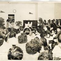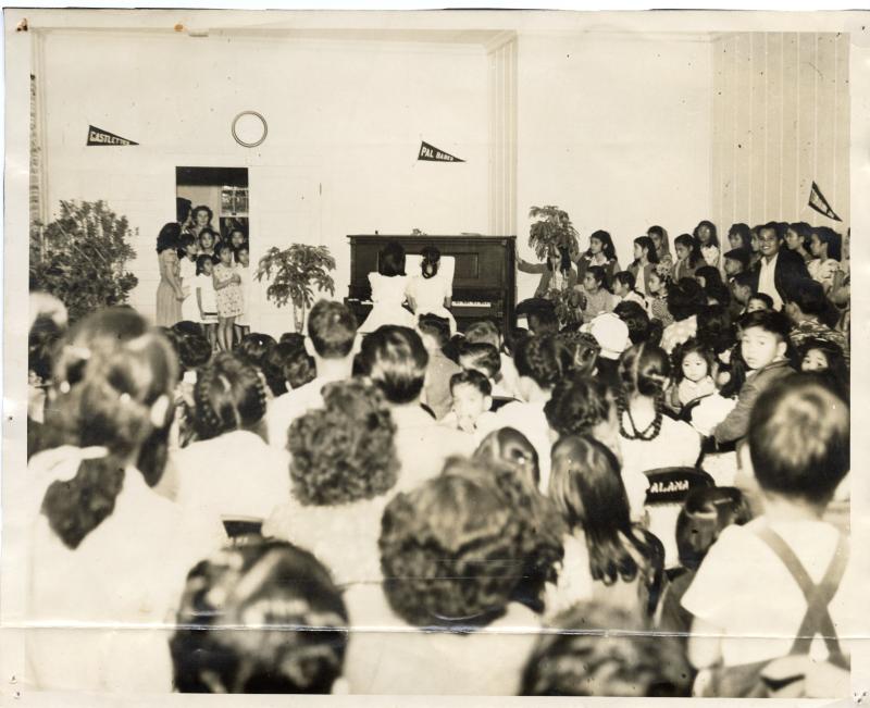 You are cordially invited to a program given by the teachers of Palama Settlement Music School on Friday evening, April 6th at 7:30 pm in the school auditorium. Miss Chun will sing a group of German lieders by Schuman. Solos on both the B flat and E flat clarinet will be played by Mrs. Gallegos. Piano solos by Bach, Chopin, and Rachmaninoff will be played by Miss Troyer. A piano concerto by Beethoven arranged for two pianos will be played by Mrs. Gallegos and Miss Troyer. A reception will be held after the recital. WE would appreciate very much you're helping out by contributing cookies do for the occasion. Will you please call the school at 8545 if you think that you will be able to help us so that we may know just how much we can count on.