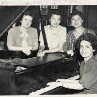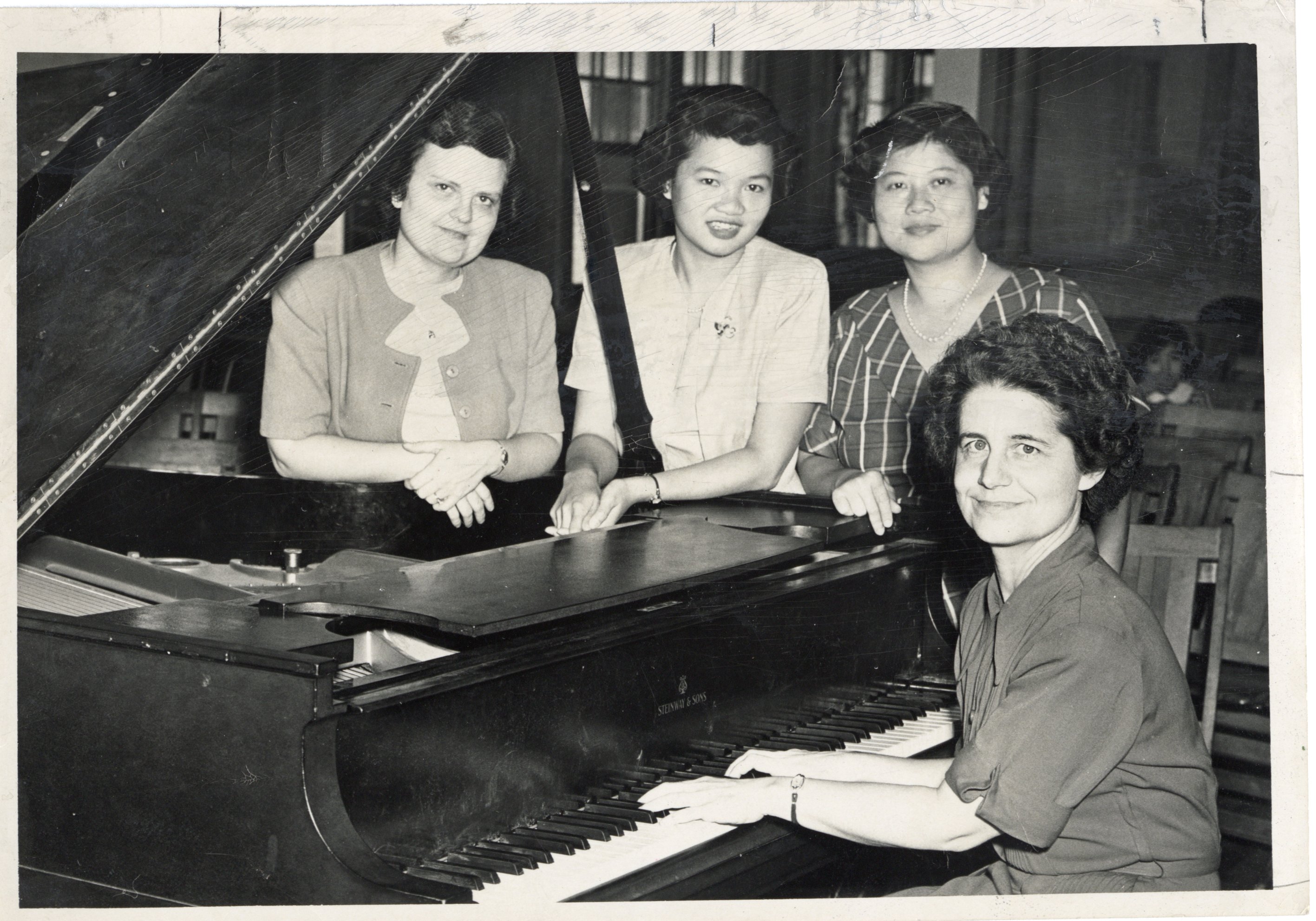 - Left to Right: Mrs. Helen Carbaugh, Miss Emma Loo, Miss Dorothy Chun, Miss Helen Gipson at the piano.