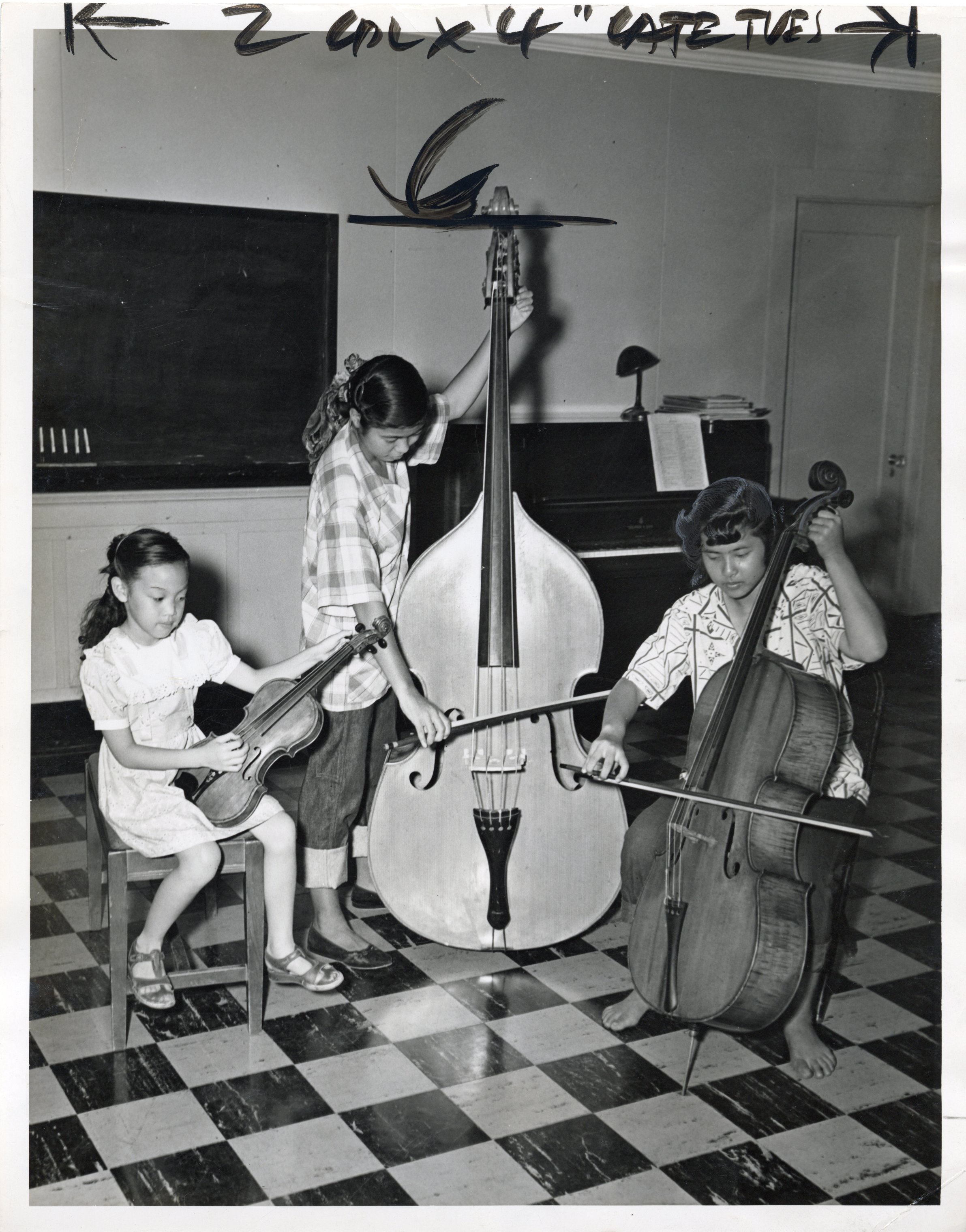 - Music school students (l-r) Diana Lau, Judy Tamanaha, and Florence Yoneyama perform.