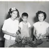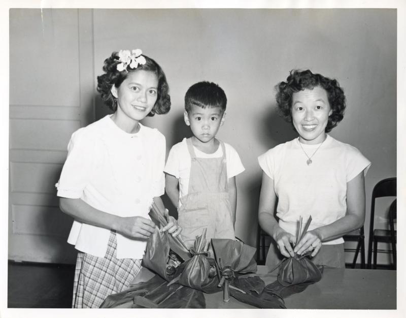 July 7, 1951 from 4:00 p.m. to 7:00 p.m. (L-R) Mrs. Kam Man Leong, Lawrence Leong and Mrs. George Lai.