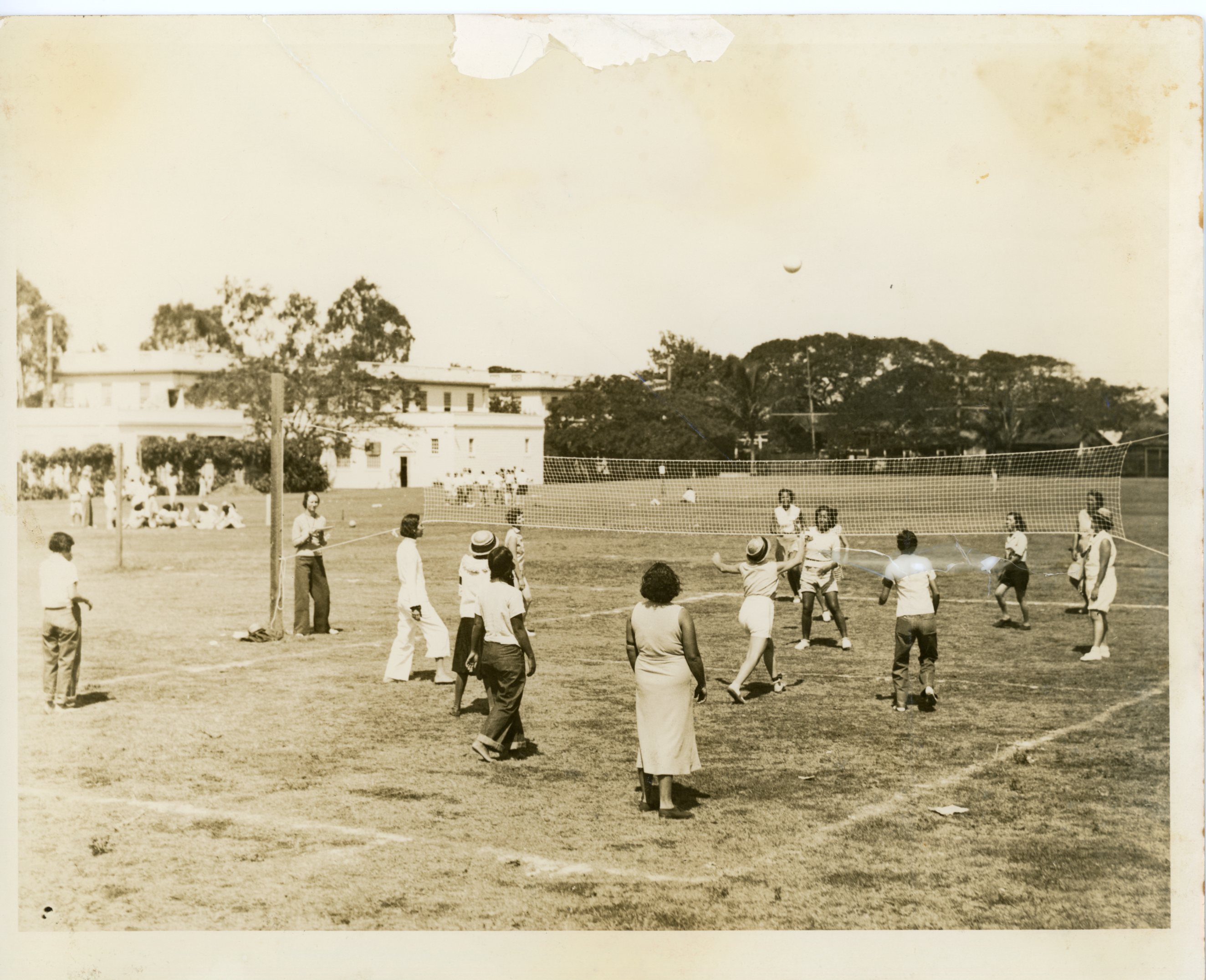 - Teenage girls playing volley ball at Palama Settlement field, 1954.