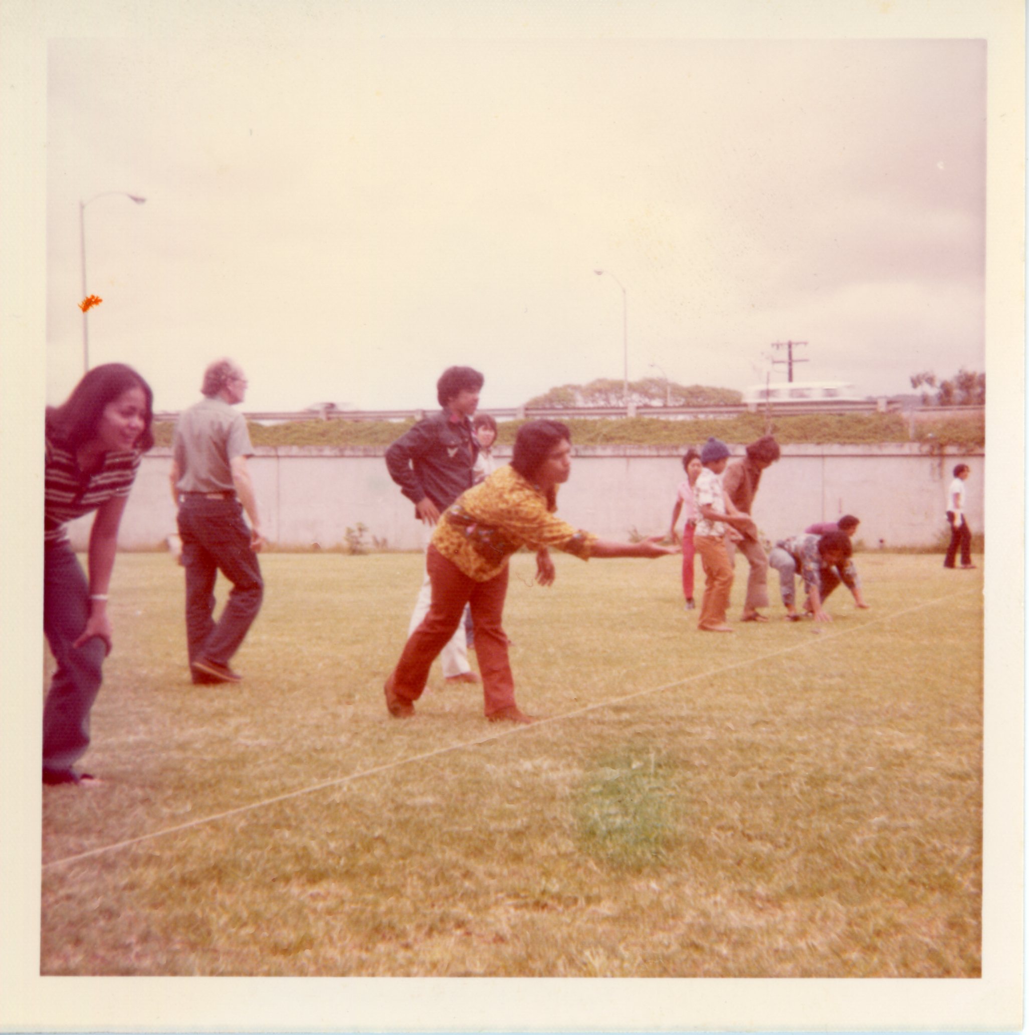 - Teenagers lined up for a game at Palama Settlement field, 1973.