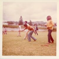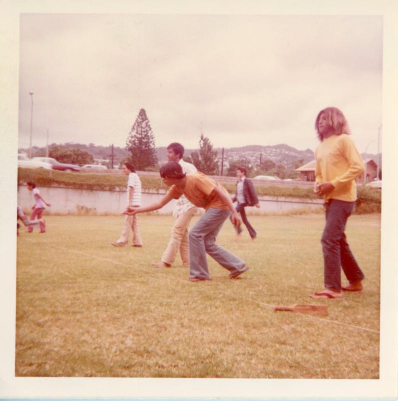 Teenagers playing a game at Palama Settlement field, 1973.