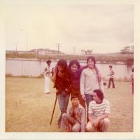 - Teenage boys posing for a photo at Palama Settlement field, April 1973.