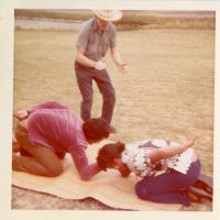 - Teen boys arm wrestling at Palama Settlement field, April 1973.
