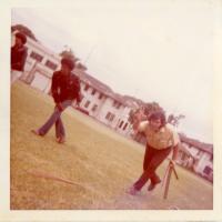 - Photo of teen boys after throwing spears at Palama Settlement field, April 1973.