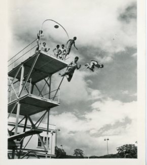 Youth diving into Palama Settlement pool at the Water Pageant, 1946. -