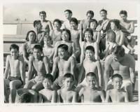 Youth swimmers pose near Palama Settlement pool, 1960.