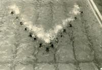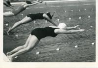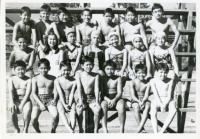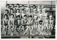 Swimmers in Palama Settlement pool in a 'V' formation, 1950.