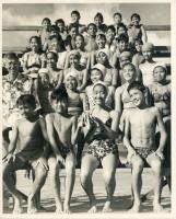 Director Eleen Watkins with youth swimmers at Palama Settlement pool, 1949.